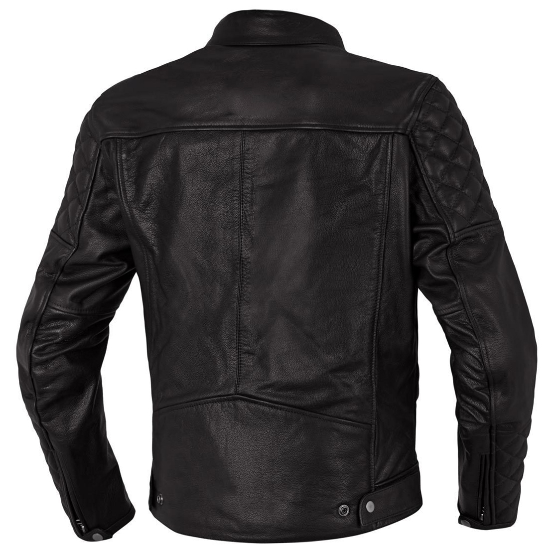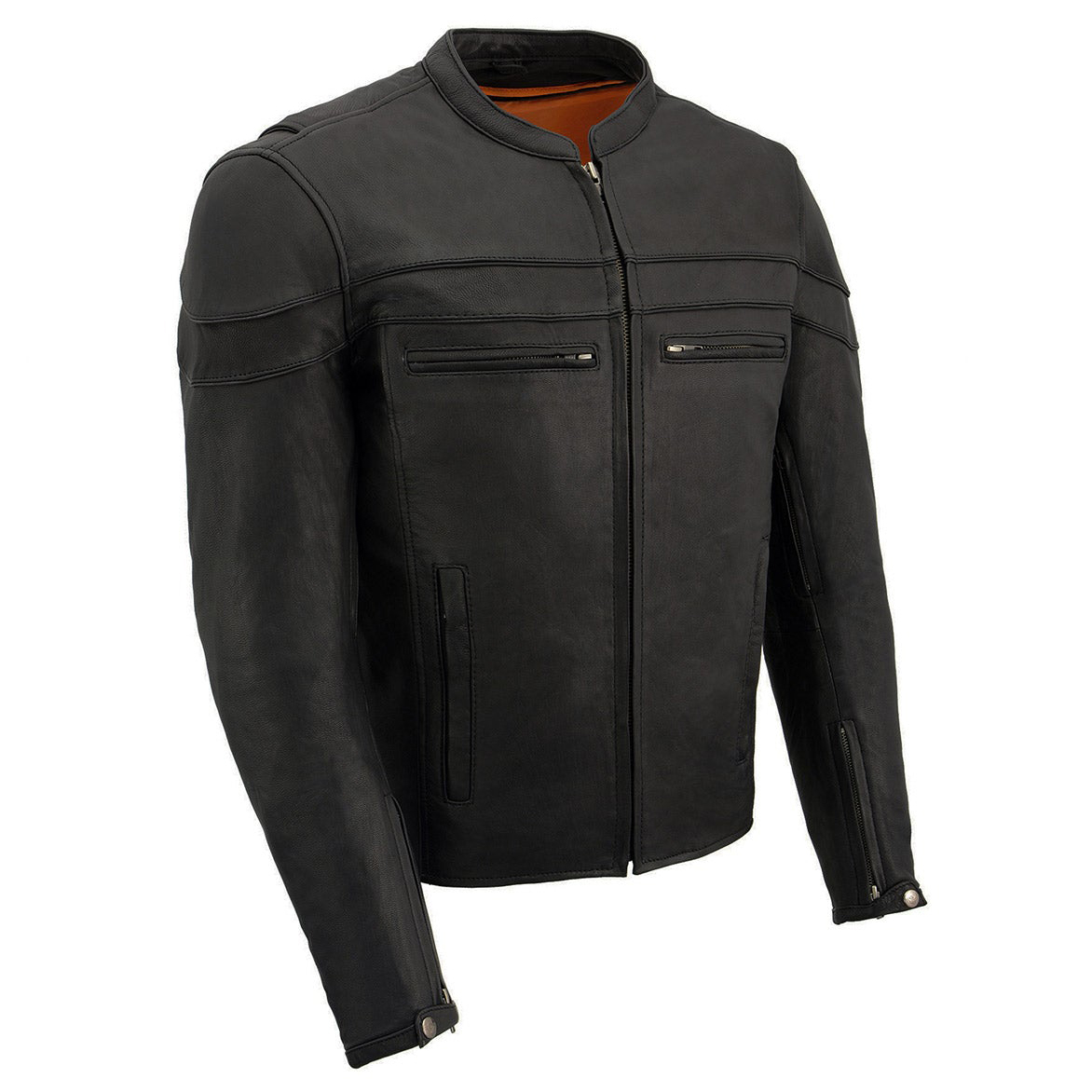 Men’s Motorcycle Leather Jacket with Protectors Black with White Stripes Winter/Summer Quilted Genuine Leather Biker Jacket